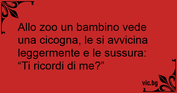 Allo zoo un bambino vede una cicogna, le si avvicina leggermente e le sussura:
