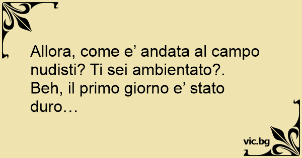 Allora, come e’ andata al campo nudisti? Ti sei ambientato?.