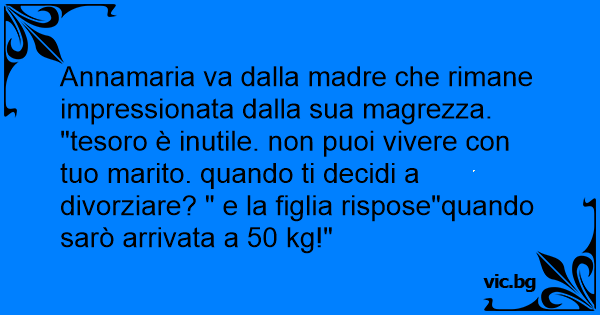 Annamaria va dalla madre che rimane impressionata dalla sua magrezza. "tesoro è inutile. non puoi vivere соn tuo marito. quando ti decidi a divorziare? " e la figlia rispose"quando sarò arrivata a 50 kg!"