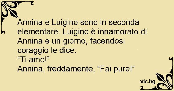 Annina e Luigino sono in seconda elementare. Luigino è innamorato di Annina e un giorno, facendosi coraggio le dice: