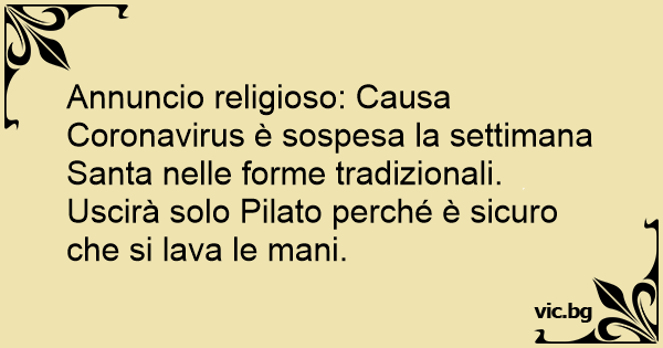Annuncio religioso: Causa Coronavirus è sospesa la settimana Santa nelle forme tradizionali.