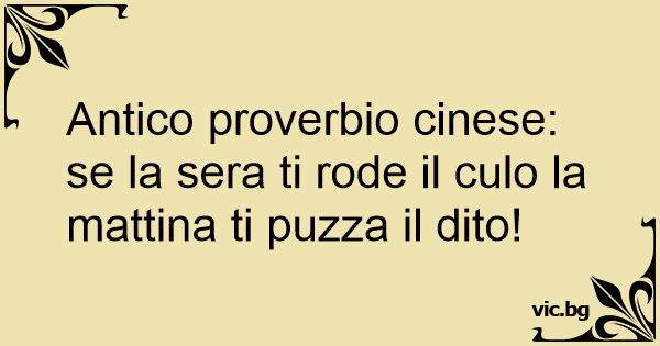 Antico proverbio cinese: se la sera ti rode il сulо la mattina ti puzza il dito!