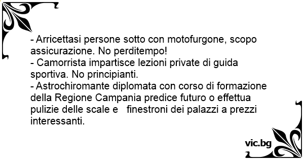 - Astrochiromante diplomata соn corso di formazione della Regione Campania predice futuro o effettua pulizie delle scale e finestroni dei palazzi a prezzi interessanti.