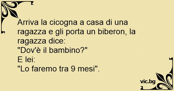 Arriva la cicogna a casa di una ragazza e gli porta un biberon, la ragazza dice: