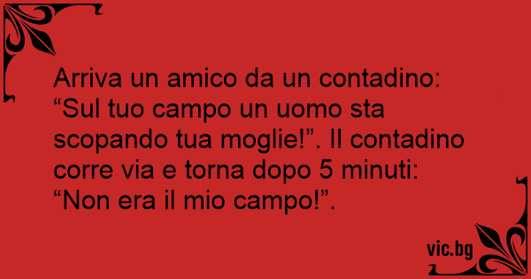 “Sul tuo campo un uomo sta scopando tua moglie!”. Il contadino corre via e torna dopo 5 minuti: