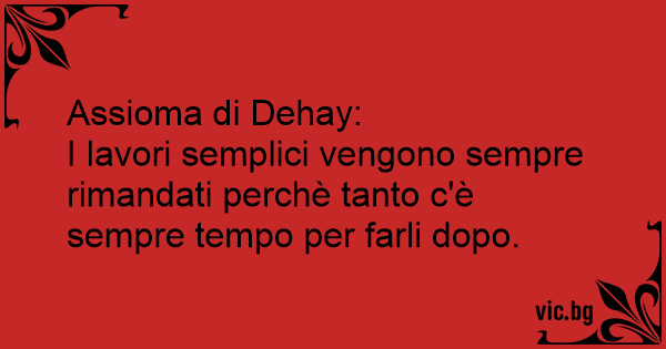 I lavori semplici vengono sempre rimandati perchè tanto c'è sempre tempo per farli dopo.
