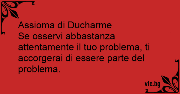 Se osservi abbastanza attentamente il tuo problema, ti accorgerai di essere parte del problema.