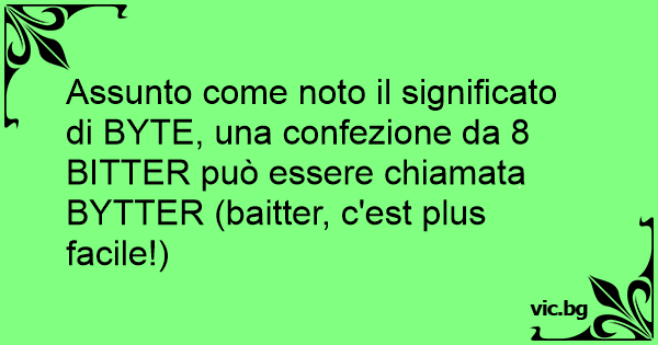 Assunto come noto il significato di BYTE, una confezione da 8 BITTER può essere chiamata BYTTER (baitter, c'est plus facile!)