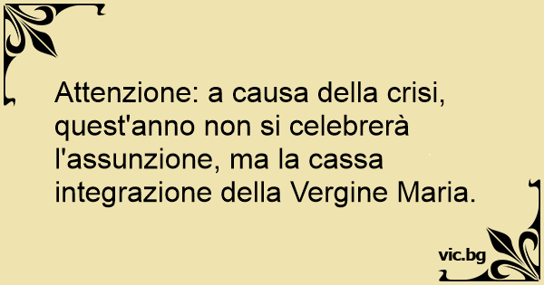 Attenzione: a causa della crisi, quest'anno non si celebrerà l'assunzione, ma la cassa integrazione della Vergine Maria.