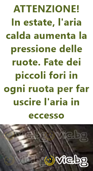 ВНИМАНИЕ! През лятото горещият въздух повишава налягането в гумите. Пробийте малки дупки във всяка гума, за да изпуснете излишния въздух.