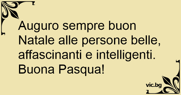 Auguro sempre buon Natale alle persone belle, affascinanti e intelligenti. Buona Pasqua!