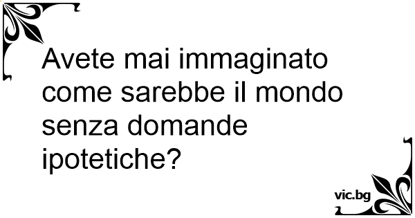 Avete mai immaginato come sarebbe il mondo senza domande ipotetiche?