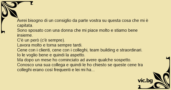 Avrei bisogno di un consiglio da parte vostra su questa cosa che mi è capitata.