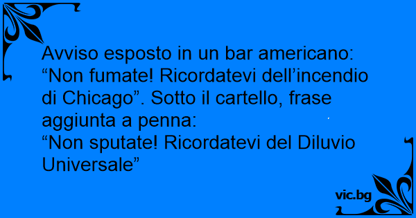 “Non fumate! Ricordatevi dell’incendio di Chicago”. Sotto il cartello, frase aggiunta a penna: