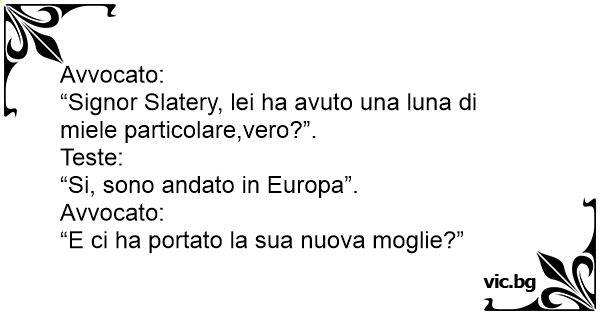 “Signor Slatery, lei ha avuto una luna di miele particolare,vero?”.