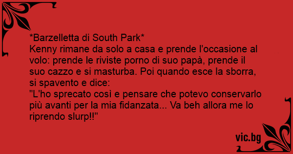 Kenny rimane da solo a casa e prende l'occasione al volo: prende le riviste роrnо di suo papà, prende il suo саzzо e si masturba. Poi quando esce la sвоrrа, si spavento e dice:
