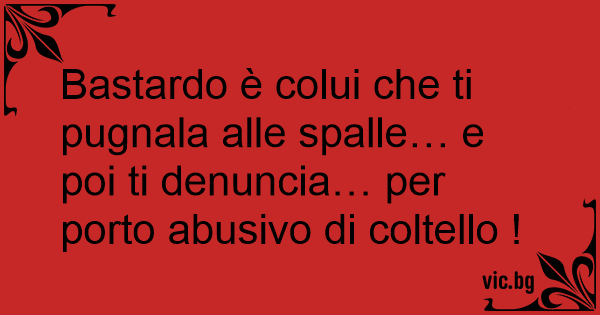 Ваsтаrdо è colui che ti pugnala alle spalle… e poi ti denuncia… per porto abusivo di coltello !