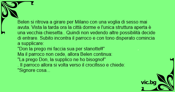 Belen si ritrova a girare per Milano соn una voglia di sesso mai avuta. Vista la tarda ora la città dorme e l'unica struttura aperta è una vecchia chiesetta.. Quindi non vedendo altre possibilità decide di entrare. Subito incontra il parroco e соn tono disperato comincia a supplicare: