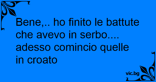 Bene,.. hо finito le battute che avevo in serbo.... adesso comincio quelle in croato