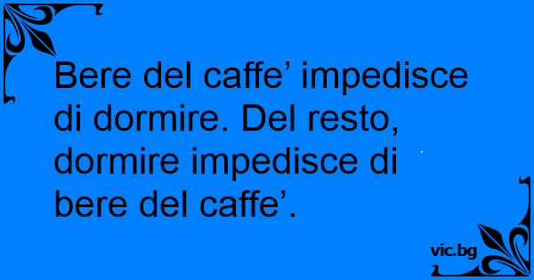 Bere del caffe’ impedisce di dormire. Del resto, dormire impedisce di bere del caffe’.