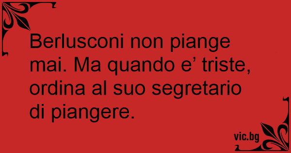 Berlusconi non piange mai. Ma quando e’ triste, ordina al suo segretario di piangere.