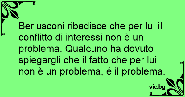 Berlusconi ribadisce che per lui il conflitto di interessi non è un problema. Qualcuno ha dovuto spiegargli che il fatto che per lui non è un problema, é il problema.