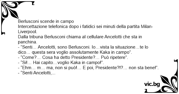 - “Senti… Ancelotti, sono Berlusconi. Io…vista la situazione…te lo dico… questa sera voglio assolutamente Kaka in campo”.