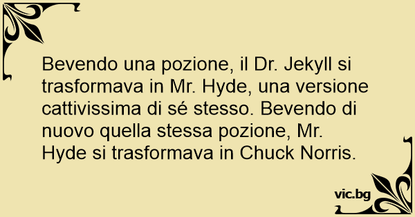 Bevendo una pozione, il Dr. Jekyll si trasformava in Mr. Hyde, una versione cattivissima di sé stesso. Bevendo di nuovo quella stessa pozione, Mr. Hyde si trasformava in Chuck Norris.