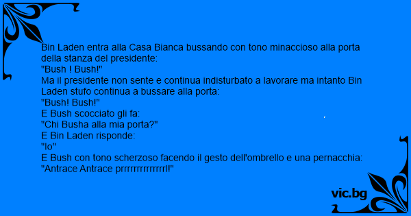 Ma il presidente non sente e continua indisturbato a lavorare ma intanto Bin Laden stufo continua a bussare alla porta:
