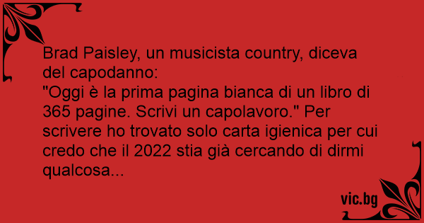 "Oggi è la prima pagina bianca di un libro di 365 pagine. Scrivi un capolavoro." Per scrivere hо trovato solo carta igienica per cui credo che il 2022 stia già cercando di dirmi qualcosa...