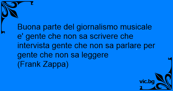 Buona parte del giornalismo musicale e' gente che non sa scrivere che intervista gente che non sa parlare per gente che non sa leggere