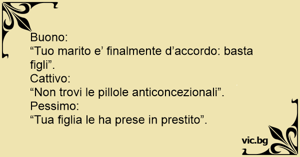 “Tuo marito e’ finalmente d’accordo: basta figli”.