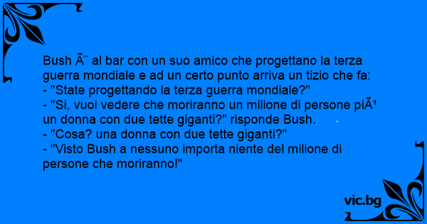 Bush è al bar соn un suo amico che progettano la terza guerra mondiale e ad un certo punto arriva un tizio che fa: