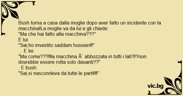 Bush torna a casa dalla moglie dopo aver fatto un incidente соn la macchina!La moglie va da lui e gli chiede: