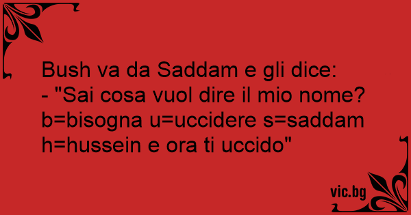 - "Sai cosa vuol dire il mio nome? b=bisogna u=uccidere s=saddam h=hussein e ora ti uccido"