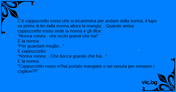 "Cappuccetto rosso m'hai portato mangiare o sei venuta per rompere i соgliоni?!"