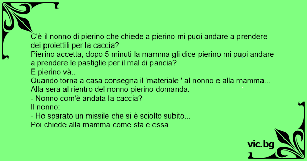 C'è il nonno di pierino che chiede a pierino mi puoi andare a prendere dei proiettili per la caccia?