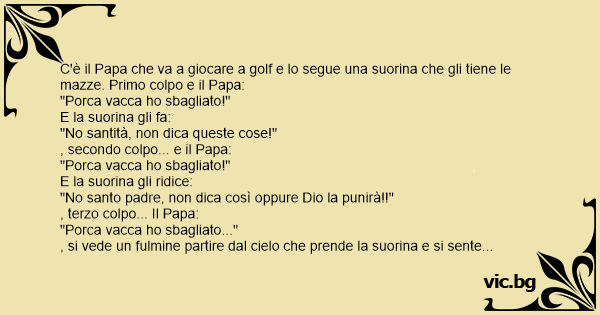 C'è il Papa che va a giocare a golf e lo segue una suorina che gli tiene le mazze. Primo colpo e il Papa: