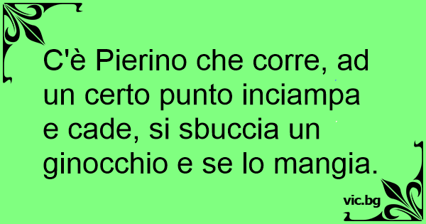C'è Pierino che corre, ad un certo punto inciampa e cade, si sbuccia un ginocchio e se lo mangia.