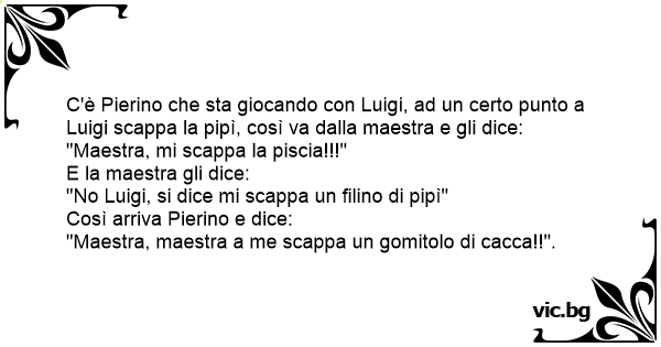C'è Pierino che sta giocando соn Luigi, ad un certo punto a Luigi scappa la рiрì, così va dalla maestra e gli dice: