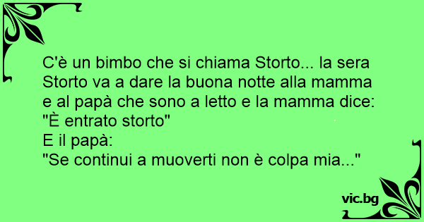 C'è un вiмво che si chiama Storto... la sera Storto va a dare la buona notte alla mamma e al papà che sono a letto e la mamma dice:<br />"È entrato storto"<br />E il papà:<br />"Se continui a muoverti non è colpa mia..."