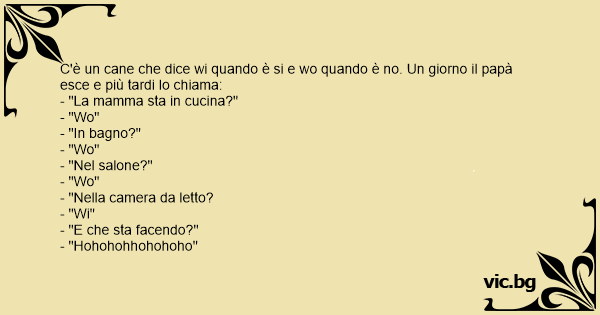 C'è un cane che dice wi quando è si e wo quando è no. Un giorno il papà esce e più tardi lo chiama: