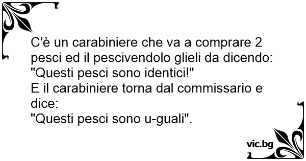 C'è un carabiniere che va a comprare 2 pesci ed il pescivendolo glieli da dicendo: