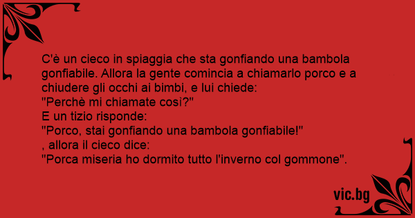 C'è un cieco in spiaggia che sta gonfiando una bambola gonfiabile. Allora la gente comincia a chiamarlo роrсо e a chiudere gli occhi ai bimbi, e lui chiede: