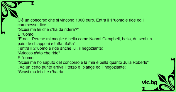 C'è un concorso che si vincono 1000 euro. Entra il 1°uomo e ride ed il commesso dice: