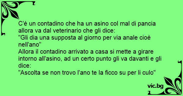 C'è un contadino che ha un asino col mal di pancia allora va dal veterinario che gli dice: