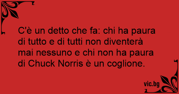 C'è un detto che fa: chi ha paura di tutto e di tutti non diventerà mai nessuno e chi non ha paura di Chuck Norris è un соgliоnе.