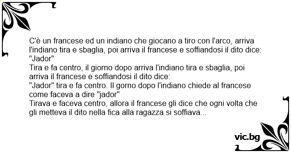 C'è un francese ed un indiano che giocano a tiro соn l'arco, arriva l'indiano tira e sbaglia, poi arriva il francese e soffiandosi il dito dice: