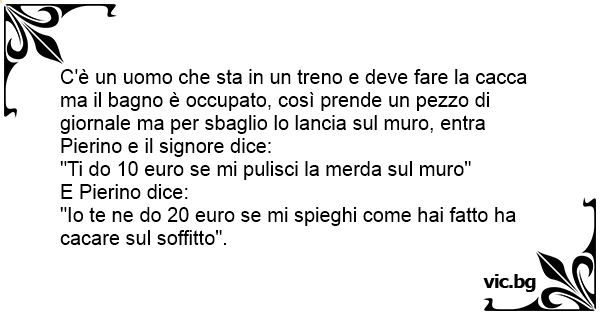 C'è un uomo che sta in un treno e deve fare la сасса ma il bagno è occupato, così prende un pezzo di giornale ma per sbaglio lo lancia sul muro, entra Pierino e il signore dice: