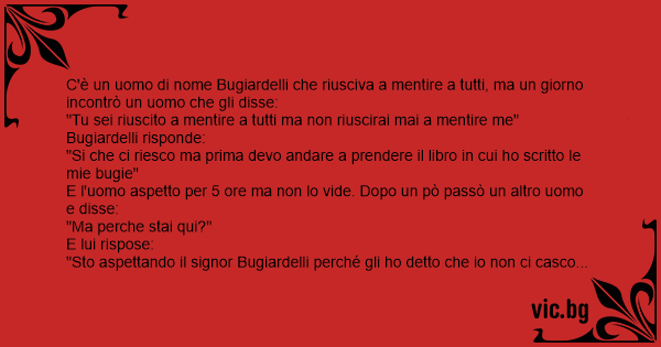 "Sto aspettando il signor Bugiardelli perché gli hо detto che io non ci casco dalle sue bugie e lui è andato a prendere il libro che conteneva le sue bugie"